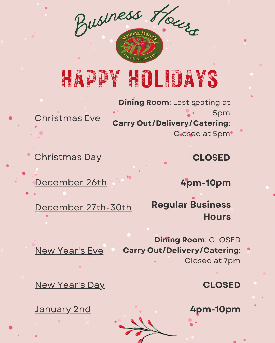 Come experience the best pizza & Italian food in town! Mamma Maria’s Pizzeria & Ristorante in Bensenville, IL where “Everyone’s Family”.